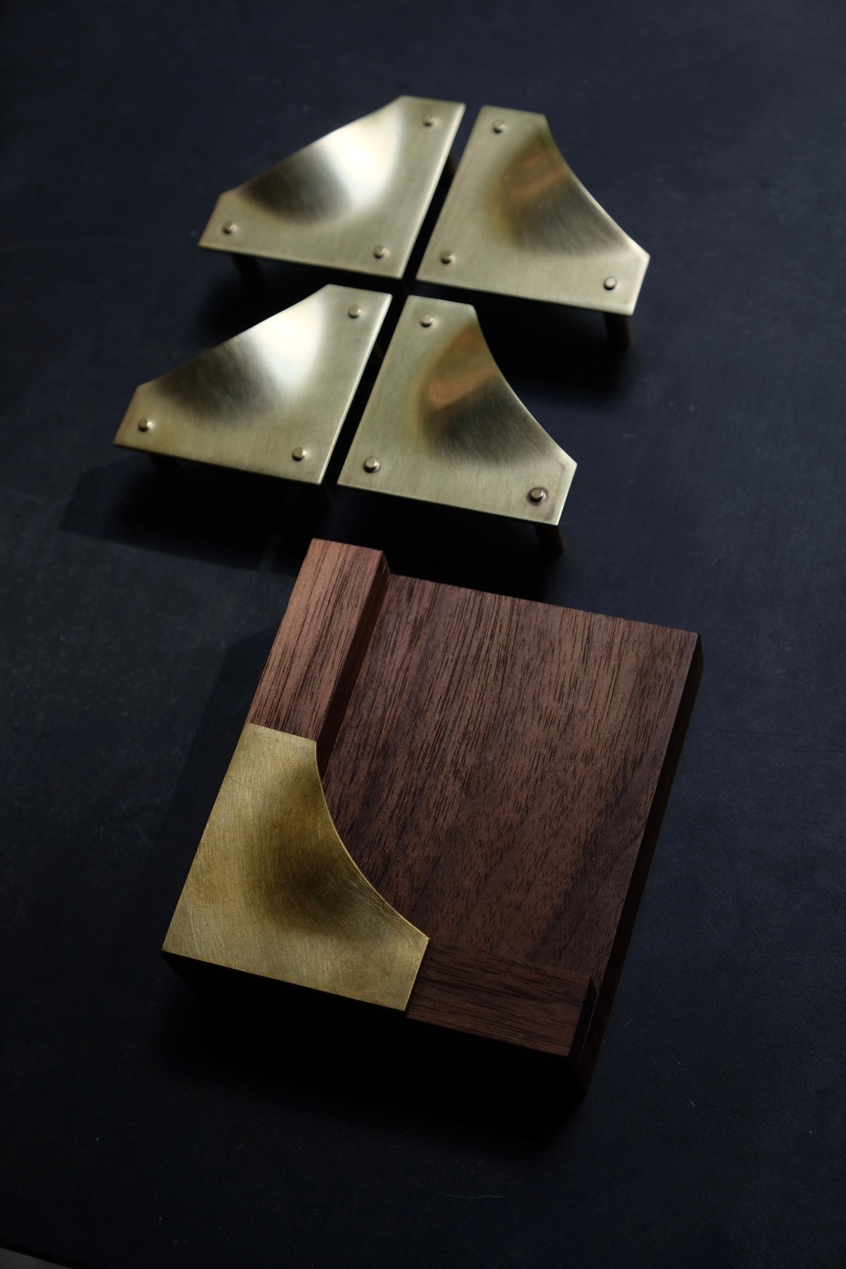 Size can vary, but what is shown is 2" square, 1/4" projection (to be mounted on raised cabinet trim as shown in picture). 8-32 screws to mount from inside panel to threaded hole in fixture. Made to order to your size and material requests.